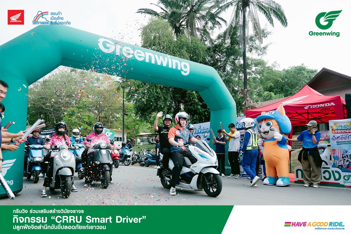 เมื่อวันที่ 16 มีนาคม 2569 กรีนวิง ผู้แทนจำหน่ายรถจักรยานยนต์ฮอนด้า เข้าร่วมกิจกรรมรณรงค์ “วันขับขี่ปลอดภัย สร้างวินัยจราจร CRRU Smart Driver” ณ มหาวิทยาลัยราชภัฏเชียงราย เพื่อมุ่งเน้นการสร้างความตระหนัก และระเบียบวินัยในการใช้รถใช้ถนนให้แก่คณาจารย์ นักศึกษา และเจ้าหน้าที่มหาวิทยาลัย